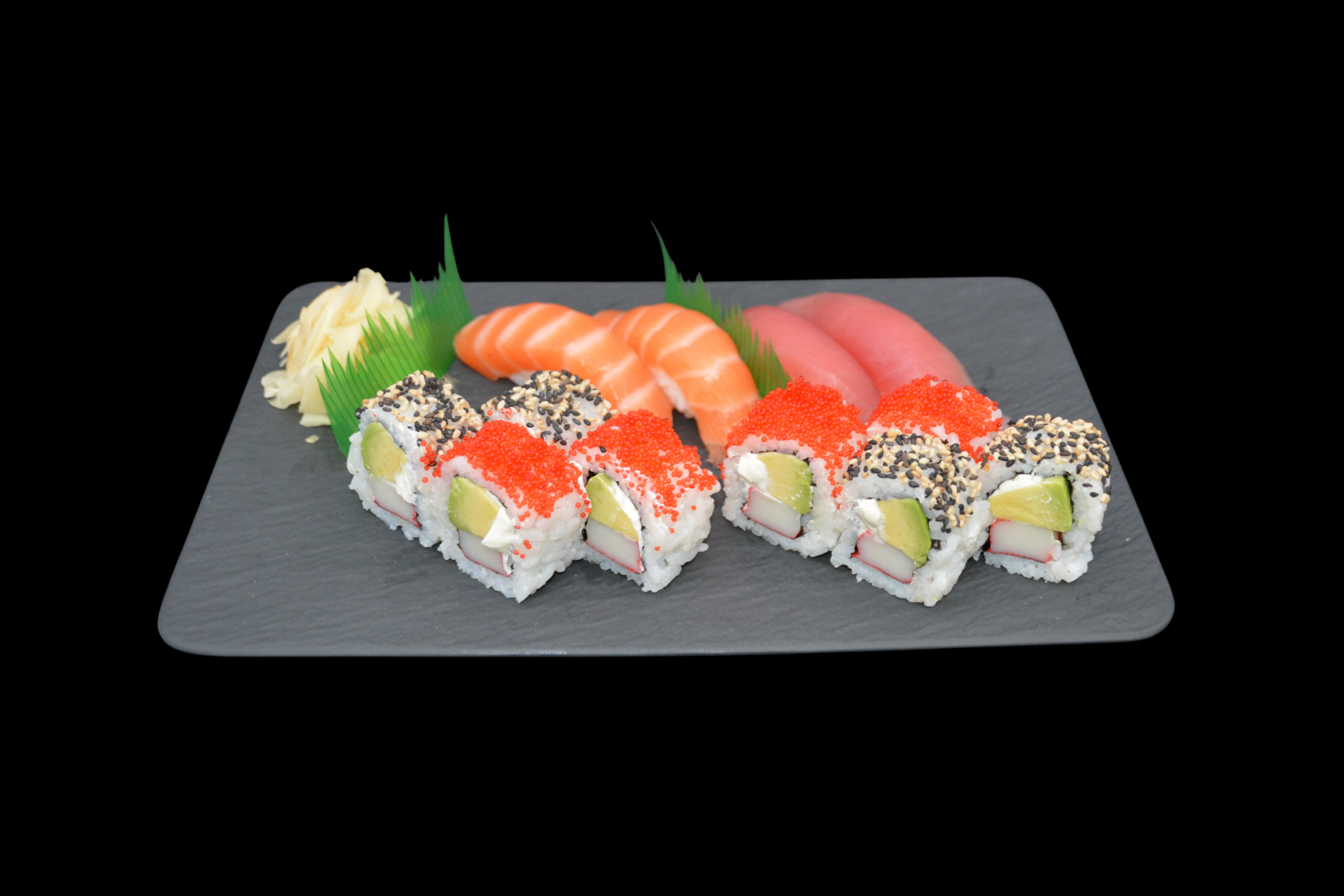 2x Lachs Nigiri, 2 Thunfisch Nigiri, 8x California Inside Out