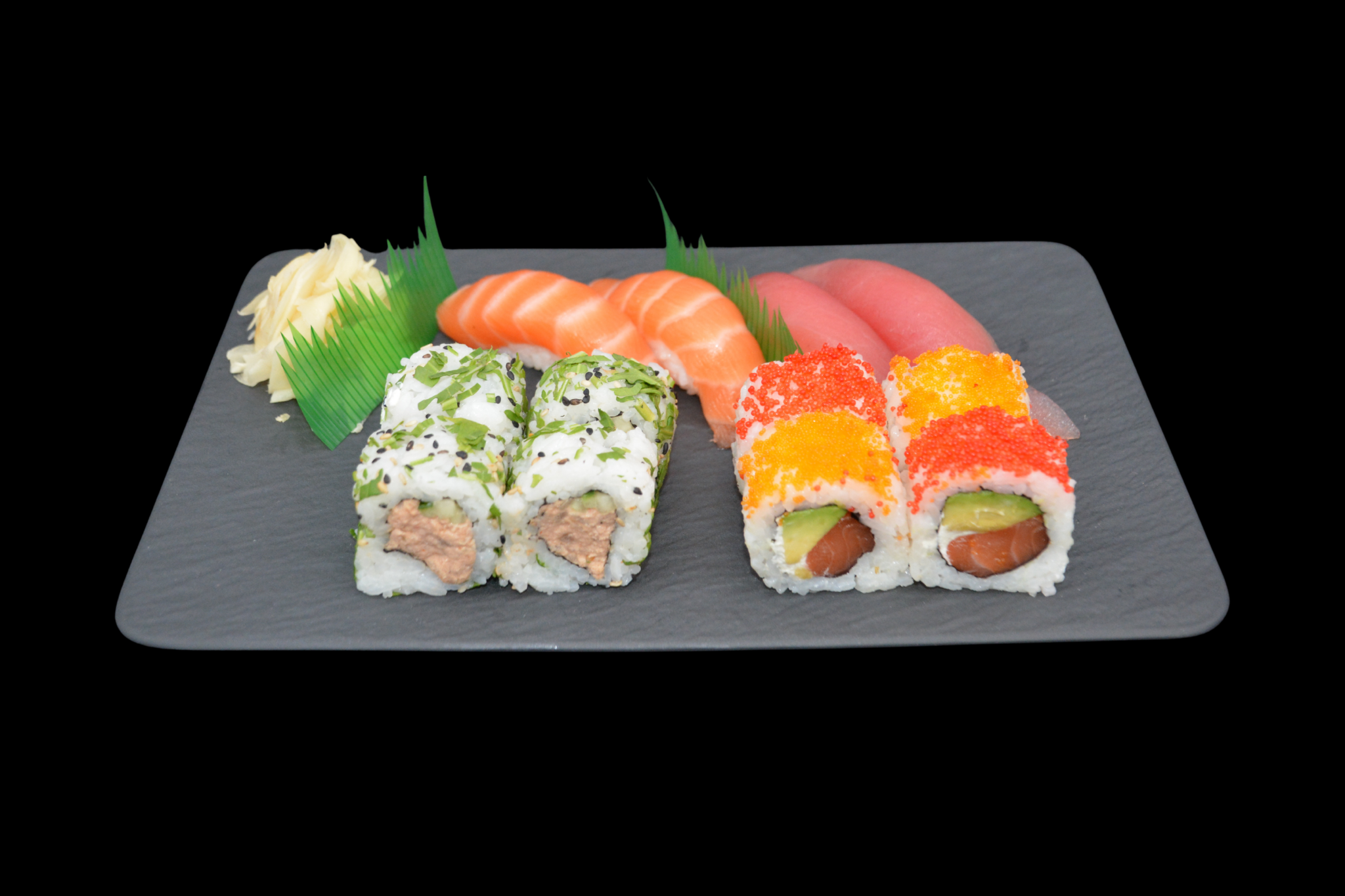 2x Lachs und Thunfisch Nigiri, 4x Lachs und Tuna Inside Out